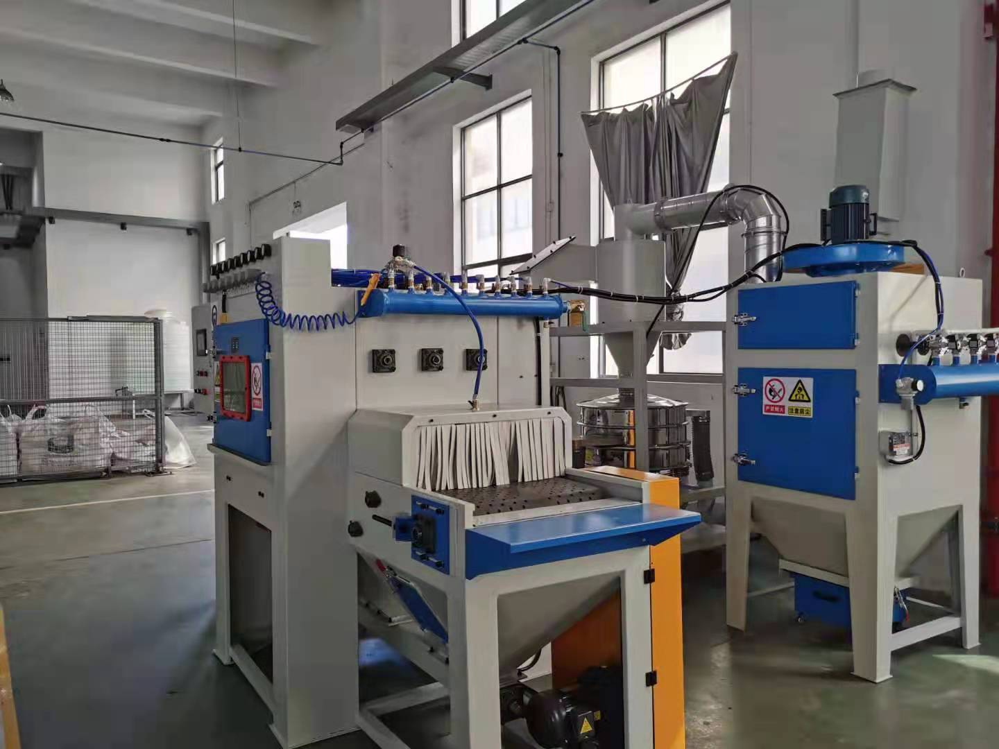 5、 配有大型除塵機和磨料與粉塵旋風分離器,可分離磨料與粉塵,可減少磨料消耗,環境污染。磨 料可自動循環使用。